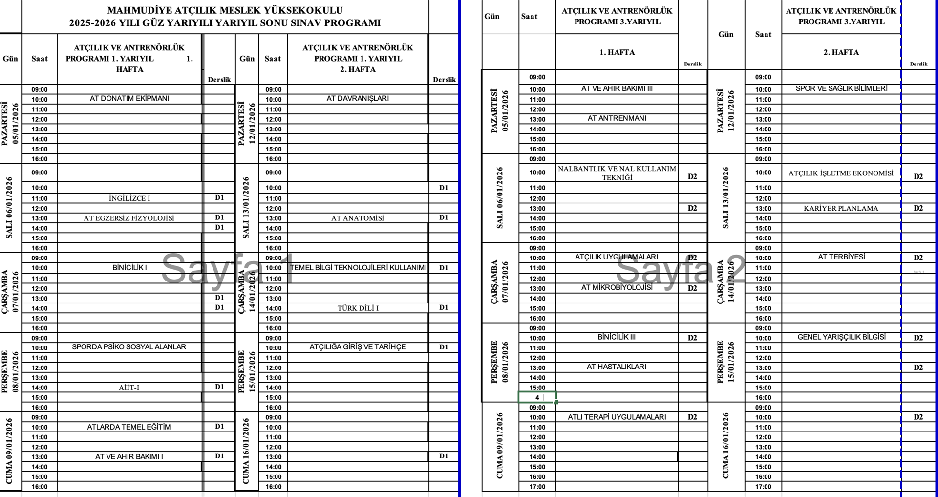 2025-2026 YILI GÜZ DÖNEMİ FİNAL SINAV PROGRAMI